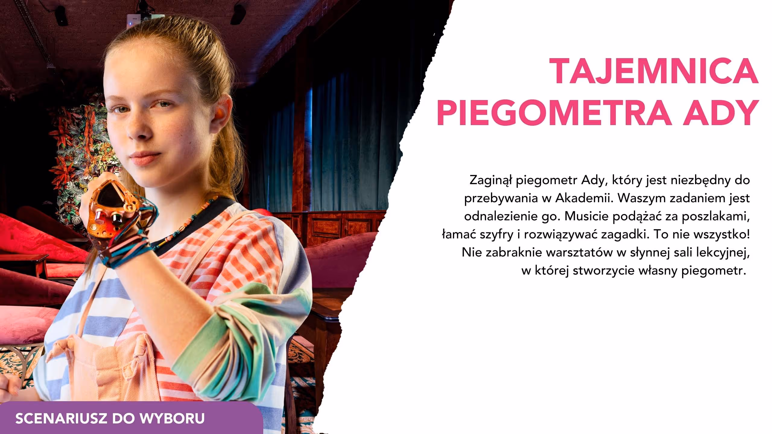 Dynamiczna zabawa w stylu escape room i podchodów! Dzieci, wprowadzone przez video z filmową Adą (Tosia Litwiniak), rozwiązują zagadki i tworzą własne piegometry.